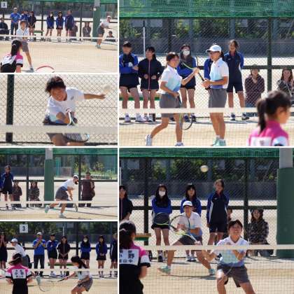 女子テニス部は団体戦の予選リーグを突破し,10月21日(日)に決勝トーナメントを迎えました。会場は四条中学校で,前日と打って変わって暑い1日となりました。初戦は周山中学校との戦いでした。3つのペアとも良く動き,流れを相手に渡すことなく見事に勝利を納めました。次の試合は上京中学校との対戦で,これもよく動き,緊張感を持って最後まで戦ったのですが,惜しくも敗れてしまいました。暑いなかでの熱い戦いでした。お疲れ様でした。