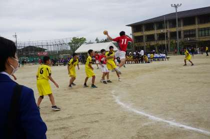 平成31年4月29日(祝)12:00〜松尾中学校で、男子ハンドボール予選リーグ2日目が行われました。対戦相手は桂川中学校でしたが、優位に試合を運ぶことができ13対10で快勝しました。予選リーグ1位となり、5月2日(木)15:30〜深草中学校で行われる決勝トーナメントに進むことができました。女子と共に、応援、よろしくお願いします。