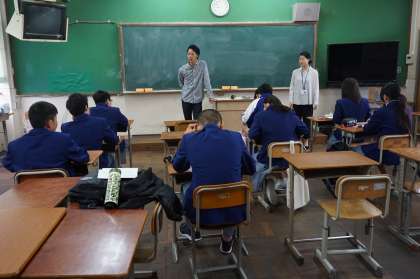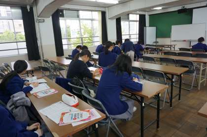 洛西中学校では,月2回『土曜スクール(英語の学習会)』を行っています。「英検コース(英語検定3〜5級合格をめざすコース)」と「英語科の補充・発展(英語科の教科習熟コース)」の2つのコースを設け,学習支援ボランティアの方2名のお力をお借りして実施しています。現在,両コース合わせて27名の生徒が登録しています。ここでの取り組みが皆さんの英語に対する意欲・関心を呼び起こし,学力の向上に少しでもつながればと願っています。開講式のあと,早速「英検コース」と「補充・発展コース」に分かれて学習しました。9時30分までのおよそ50分間の学習でしたが,みんな集中して取り組みました。なお,土曜スクールは,2月まで残り13回実施します。参加申込は随時受け付けています。手元に申込書がない人は,教頭まで取りに来てください。