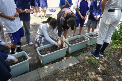 5月23日(木)中間テスト終了後,「福島 ひまわりプロジェクト」の第2弾として,ひまわりの種まきを行いました。