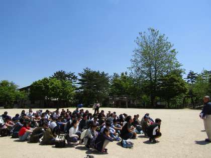 予定通り午前10時過ぎに,無事にガリバー旅行村に到着しました。入村式の様子です。