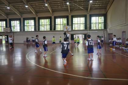 ゲームをする人も応援する人も,和気あいあいとゲームを楽しんでいました。昨日の3年生球技大会と比べると当然ながら技術的には発展途上ですが,応援する人もきちんと座って整然と声援を送っていたのが印象的でした。今日のように暑い日はダラダラしがちな生徒が多いものですが,今の1年生の良い面がよく出ていると思います。得点するたびに,チームで喜び合う姿など,学級のまとまりも出てきたようです。1年生にとって有意義な行事がまた一つ増えたと思います。