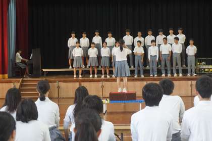 3年生のリハーサルは,4時間目です。3年生にとっては最後の学校祭となります。今週の金曜日には最後の合唱である本番を迎えます。今日のリーサルの出来は,リハーサルとしてはほぼ及第点とのこと。さすがは,最上級生です。