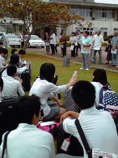 下の写真がそのときのようすです。今日一日が終わりに近づき、さすがに疲れ気味ではありますが、これからあるホームステイ先での新しい体験を楽しみに、あと少し「頑張りまーす!!」