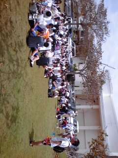 離村式が行われました。いよいよ午後のマリン体験へ出発です!
