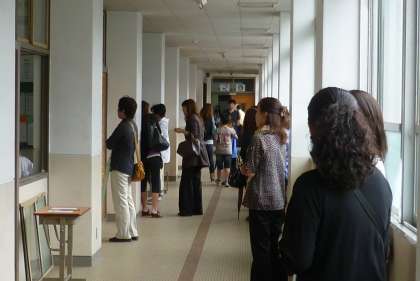 保護者や地域の方も廊下や教室でわが子や授業のようすを熱心に見てくださっています。