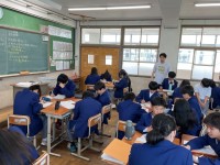2年生は偶数の生徒たちが登校しました。昨年度1年間かけて積み上げてきた学習をもとに,各教科の授業に集中して取り組んでいました。写真1は2年生の国語,写真2は2年生の社会,写真3は2年生の英語の様子です。
