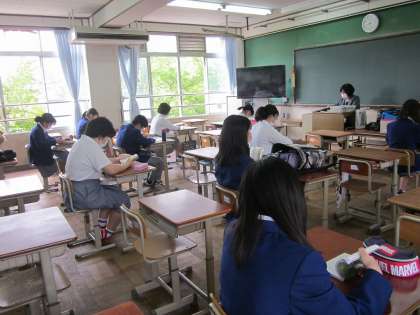 健康観察票をもとにした健康チェックが済むと,各学年ともに生徒たちは朝読書に取り組んでいました。自分の興味関心のある本を持参し,読み進めていました。