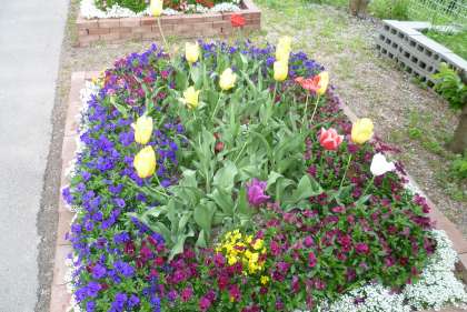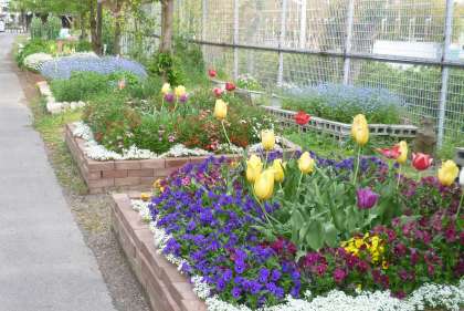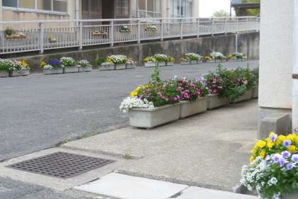 これは校門付近の花と南校舎の南側の花壇に咲く花のようすです。