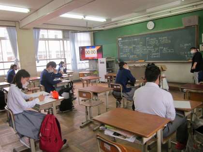 3年生について,写真1は理科の授業の様子,写真2は数学の授業の様子,写真3は英語の授業の様子です。このウォーミングアップ期間に,3年生は本当によく順応し,授業も質的に向上しています。明日は,通常の通りの全員登校で,7時間授業です。久しぶりの皆さんとの再会を楽しみ,新しい生活様式も頭に入れて頑張っていきましょう。