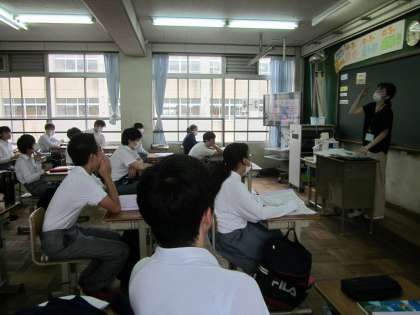 本日は45分の6時間授業でした。休憩時間も10分間に戻りました。写真1は1年生の数学の様子,写真2は2年生の社会の様子,写真3は3年生の英語の様子です。これまでの分散登校での学習を活かしながら,皆さん,頑張って授業に臨んでいました。
