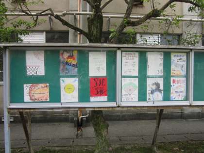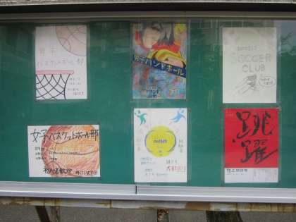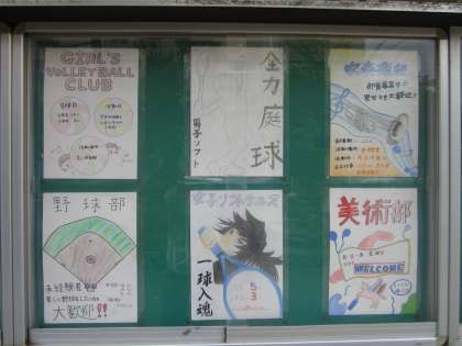 校門を入って右に曲がったところにある掲示板に,1年生への部活動紹介ポスターが掲示されています。どれもこれも力作ぞろいです。今後の部活動の流れは次の通りです。