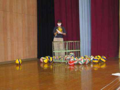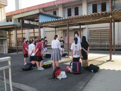 3ヶ月間のブランクがあるので,体を徐々に慣らすために,少し短めの時間設定です。終了後は,各部ごとに顧問の先生を中心に,広めの円陣を組んで振り返りを行っていました。生徒が下校した後は,顧問の先生方がそれぞれの活動場所で消毒作業を行ってくださいました。