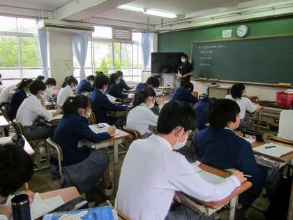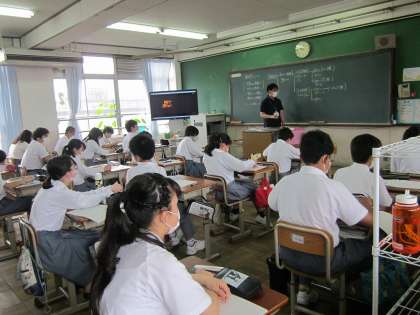 写真3は,2年生の数学の様子です。文字式について学んでいました。