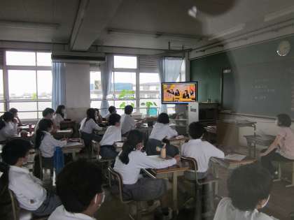 7限総合的な学習の時間に,1年生はキャリア教育一環として,「なぜ,勉強する必要があるか?」について考えました。このクラスの生徒の答えは,「おこられるから」「将来のため」「社会に出る時に役立つから」「命令されて」「生活するため」「職をさがすと時に苦労しないように」等,様々な意見が出されました。その後,少し先輩たちは,どのように考えているのか,ビデオを視聴しました。