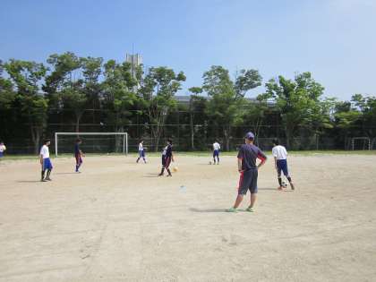 写真3は,サッカー部が,動きながらより効果的なパスが出せるように練習に取り組んでいる様子です。