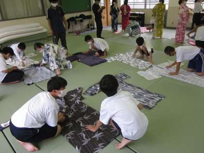 限られた時間の中で,皆さん,手際よく浴衣を着てたたむことができました。良き日本の伝統文化の一つを体験することができ,有意義な時間になりましたね。ご指導いただきました4名の講師の先生方に,この場をお借りして御礼申し上げます。