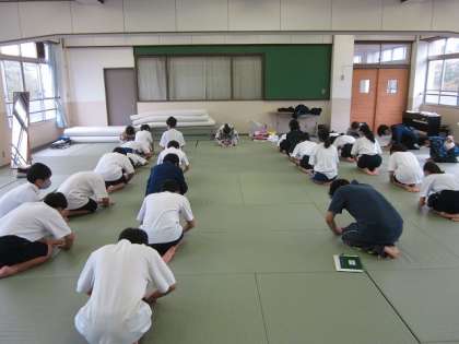 写真を撮った後は,講師の先生の指示で,浴衣を脱いで元通りに折りたたみました。そして,最初の隊形に戻って,講師の先生方に感謝の気持ちを,女子評議員が代表して述べました。最後は,座礼をして終了しました。礼に始まり礼に終わりました。