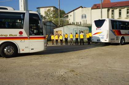 予定通り7時15分,3台のバスに分乗し広島に向け出発しました。1・2年生の教職員に見送られ,2泊3日の修学旅行へと旅立っていきました。バスは,名神高速・山陽自動車道で西に向かいます。広島到着は12時30分の予定,まずは平和記念公園を訪れます。3日間とも天気は良さそうです。