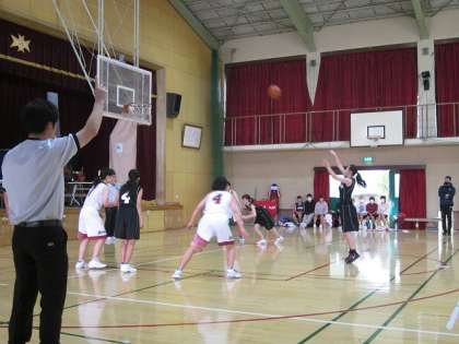 11月1日(日)9時00分から,上京中学校において,女子バスケットボールの秋季大会トーナメント1回戦が行われました。対戦相手は,上京中学校でした。前半の序盤は互角の戦いでしたが,次第に相手より動きがよくなり,シュートも決まりだし,点差をつけてハーフタイムを迎えました。後半,相手の必死の攻撃に押されだし,終盤で逆転を許しました。しかし,最後まで諦めずに食らいつき,スリーポイントシュートを決め,3点差まで追い上げましたが,残念ながら敗れました。スピードで相手を上回り,思い通りに試合が進んでいる場面がありました。最後までそのエネルギーが切れないように,この冬,しっかり練習して,春季大会に臨んでください。