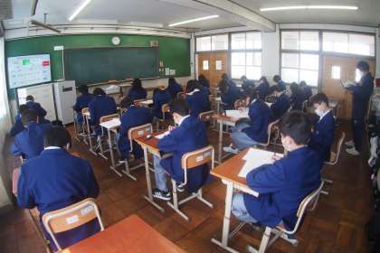 今日の1年生ジョイプロは,6年生の「第5回(小学校総まとめ)確認テスト」にあたるものです。今回のテストの「予習プリント」は,6年生の終わりに小学校で配ってもらいました。春休みに各自予習プリントをやって,入学後に中学校で回収しましたが,回収率はなと100%,素晴らしい。本日は,国語と算数2科目のテストを行いました。写真は3時間目の国語の様子で,さすがにみんな真剣に取り組んでいました。このテストには予習シートと復習シートがついています。家庭学習としても活用してください。結果は約1か月後に返却されます。