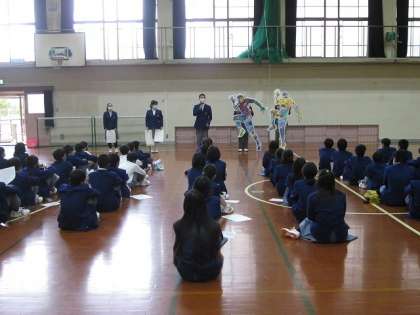 4月13日(火)6限に,新入生に向けて,部活動オリエンテーションを実施しました。各部活動の活動や練習の内容を説明・紹介することにより,新入生に3年間を見通して部活動を選択してもらうことをねらいに行いました。各部活動の代表者が活動や練習の内容を説明した後に,簡単なパフォーマンスを披露して,雰囲気を伝えていました。
