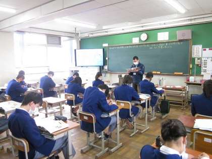 4月14日(水)の3年生の授業の様子を抜粋してお伝えします。写真1は数学の授業で,式の展開と因数分解の導入として,トランプマジックの謎を考えていました。写真2は社会の授業で,日本が第一次世界大戦に参戦した理由や,第一次世界大戦が日本に与えた影響を考えていました。