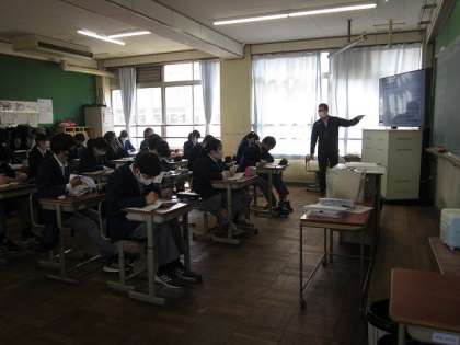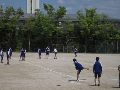 4月19日(月)3年生の授業の様子を抜粋してお伝えします。写真1は体育女子の授業で,新体力テストの50m走に取り組んでいました。写真2は体育男子の授業で,新体力テストのハンドボール投げに取り組んでいました。写真3は社会の授業で,大正デモクラシーの時期に,日本の政治にどのような変化が生じたのかを考えていました。
