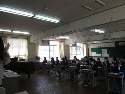4月20日(火)2限の授業中に地震が発生しました。1年生の音楽の授業では,いつものようにリズムカードを活用して,手と足を使ってリズムを刻む練習をしている最中でした。生徒たちは,先生の指示で素早く机の下に体を入れて身を守る行動をとっていました。