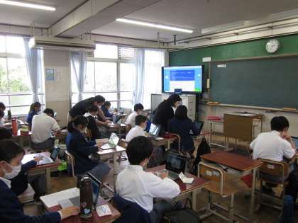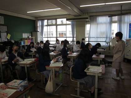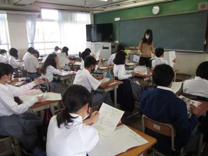引き続いて,6月7日(月)6限の学活の様子です。写真1は1年生で,来週の水曜日(6月16日)から始まる1学期期末テストに向けて,配布された試験範囲表をもとに,学習計画表に予定を記入していました。写真2は2年生で,タブレット端末のマイクロソフト365フォームズを活用して,クラスマネジメントシートに取り組んでいました。写真3は3年生で,公立高校や私立高校の学校説明会について確認していました。