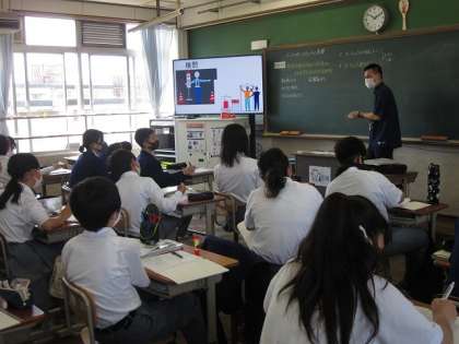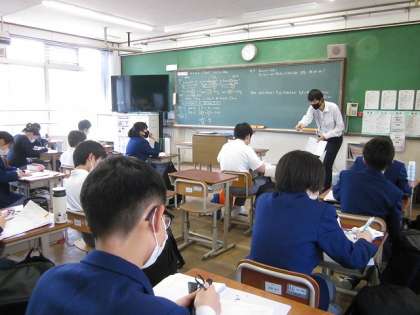 6月10日(木)の授業の様子を抜粋してお伝えします。写真1は1年生の社会の授業で,国境を自由に越えられるEUの暮らしについて学んでいました。写真2は2年生の数学の授業で,割合について学んだ後に,練習問題に取り組んでいました。写真3は3年生の体育の授業で,女子が体育館でバレーボールに取り組んいました。皆さん,声をかけながら楽しそうに頑張っていました。