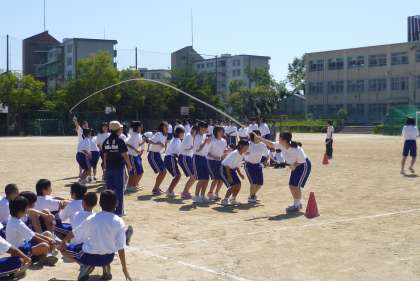 体育の部の最後は、1年生の“大縄跳び”のようすです。
