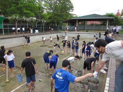 評議・専門委員会の皆さんと教職員とでプール清掃を実施!