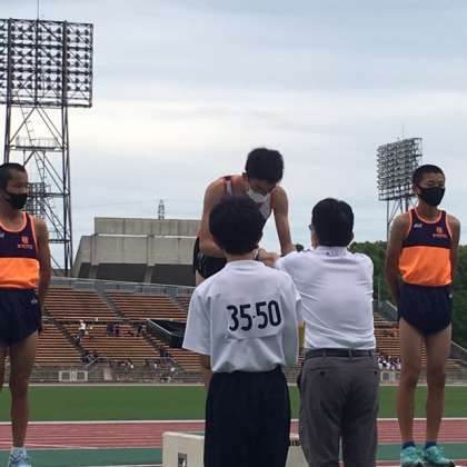 6月19日(土)20日(日)に,たけびしスタジアム・補助競技場において,陸上競技の夏季選手権大会が実施されました。男子は19種目,女子は15種目が行われました。その中で男子1,500m走において,本校の2年生が4分19秒59のタイムでで優勝しました。おめでとうございます!1学期終業式の時に表彰したいと思います。その他の競技に出場した選手も,最後まで一生懸命頑張っていました。お疲れ様でした。