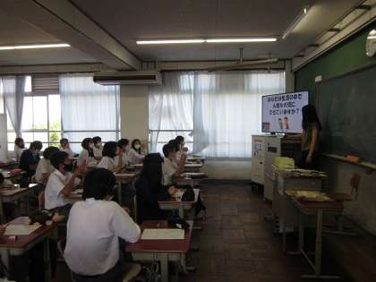 6月21日(月)6限,学活の時間に,1年生が「みんなが幸せにくらすために」と題して,人権学習(1)に取り組みました。「人権ってどんな権利?」という問いに,結婚の自由,言論の自由,表現の自由,プライバシーの権利,教育を受ける権利,安全に暮らす権利などと答え,みんなで確認していました。人権とは,すべての人がもつ幸せになるための権利であり,世界人権宣言や日本国憲法でも保証されていることを学びました。そして,自分たちの周りで人権は守られているか,大切にされているかを考え,発表していました。この学びを,今後の学校生活に生かしてください。