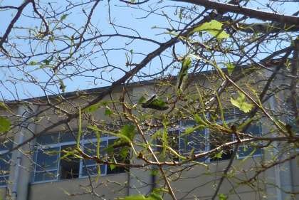 さて、その台風が過ぎ去り、それが影響したかは定かでありませんが、その後、本校では「毛虫」が大量発生するということが起こりました。とくに、先週の一週間で、桜の葉がほとんど食べられてしまうという木が出てくるなど、ものすごい勢いです。