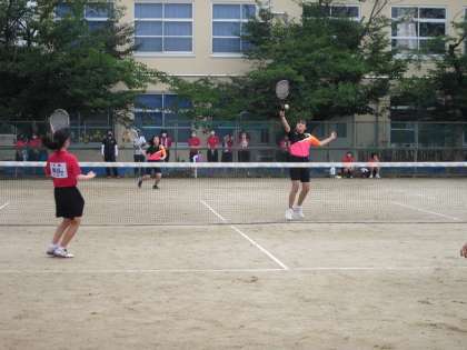 2組目のペアは,久世中学校との対戦でした。サーブやボレーが要所・要所で決まり,試合を優位に進めることができました。時にはリターンエースも出て,4対1で勝利することができました。