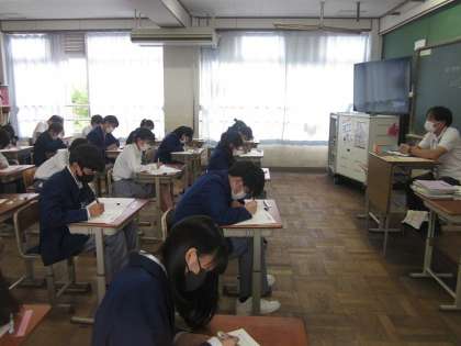7月6日(火)2〜4限と7日(水)3〜4限に,2年生が学習確認プログラムPre-Stage1に取り組みます。これは,学習の定着状況の確認をテスト形式で行うものです。本日は国語・社会・数学のテストに取り組みました。明日は理科と英語のテストを実施します。これまでの自らの学習状況を知る良い機会になります。また,このテストには,予習シートと復習シートがついていますので,家庭学習にしっかり活用してください。結果は約1か月後に返却される予定です。中学1年生からの推移もわかるので,自分のがんばり度も振り返ってください。