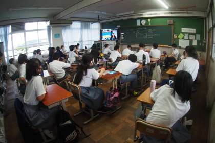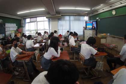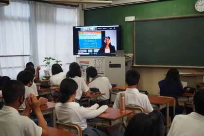 7月14日(水)5限に,「1年ケータイ教室」を実施しました。例年は,KDDIより講師をお招きし,学年生徒全員が会議室に集合してケータイ教室を実施するのですが,今年は,新型コロナウイルス感染防止のため,各学級でKDDI講師の方のリモートによる学習に取り組みました。