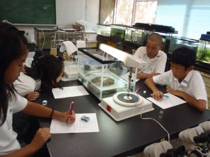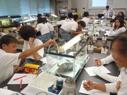 1年1組のようすです。アカハライモリを使って実習をしました。