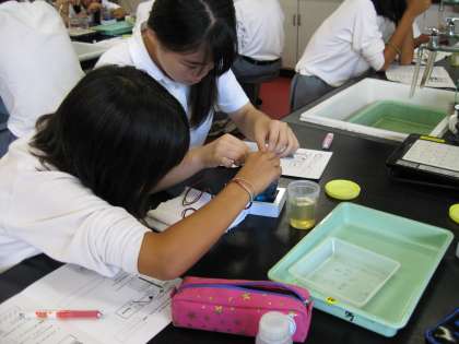 1年1組は、金属の銅をメッキしました。