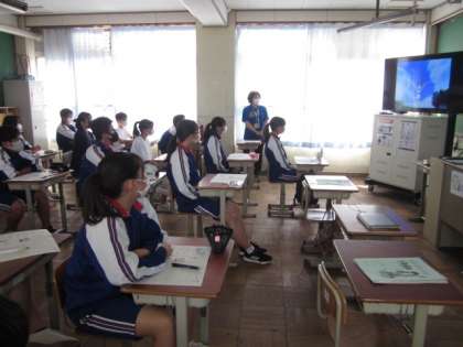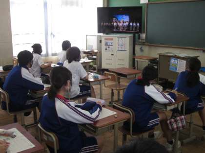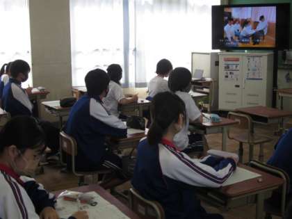 2限目,3年生は各クラスで総合的な学習の時間の映像鑑賞を行いました。1年生の「福祉のまち洛西」のポスター発表の様子,2年生の「東日本大震災に学ぶ」の映像発表,そして,3年生の「平和な世界をつくるために」にと題した『夏雲』を視聴しました。映像に力がありましたので,皆さん,しっかり見ていました。