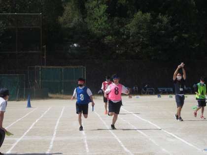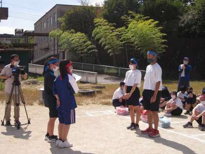 学級対抗リレーでは,クラスが一丸となってバトンをつないでいました。先にゴールを許しても,最後まで全力で駆け抜けていました。閉会式も自分たちの力で行い,リレーの優勝チームに表彰状を渡していました。その様子もRCVの方に撮影をしていただきました。