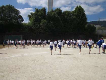 3年生は開会式に引き続いて,体育委員が中心となって準備運動を行い,100走に臨みました。女子から始まりましたが,中学校生活最後の体育の部を,全力を尽くして思いっきり楽しもうという意欲が現れた応援と走りを繰り広げていました。男子はさすがに迫力満点の走りで,土を蹴る音が違いました。