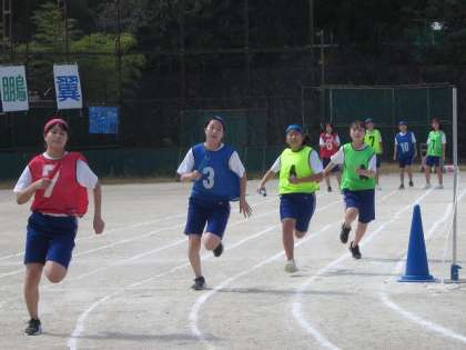 ハードル走では,男子が横一線で接戦を繰り広げていました。中学校生活学最後の学級対抗リレーでは,いやが上にも気合が入ります。クラスの仲間と声をかけって,チーム一丸となって,どのクラスもバトンをつないでいました。ゴール後はお互いの健闘を称え合い,気持ちよいリレーが終了した。