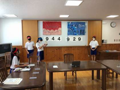5限目はZoomを使って,エンディングを行いました。最初に体育の部の結果発表があり,優勝の赤団の団長に校長先生より表彰状が手渡されました。そして,双方懸命に競い合った青団の団長と赤団の団長から,それぞれ話がありました。その後,体育委員長より体育の部を振り返り,みんなが全力で走りバトンをつないだよい体育の部になったとまとめをし,この経験を今後に生かしたいと話してくれました。また,文化委員長はコロナ禍で合唱コンクールが中止になって残念だったけれど,総合的な学習の時間の映像発表や教科の展示鑑賞など,みんなが自分たちの力でより良い「文化の部」にしようと努力してくれた結果,とてもよい「文化の部」になったと語ってくれました。最後に校長先生から,いい表情で全力で走ってつないだ,素晴らしい体育の部となりましたと,皆さんの健闘を称えれてました。また,特に総合的な学習の時間の映像発表,1年生の「福祉のまち洛西」,2年生の「東日本大震災に学ぶ」,3年生の3年生の「平和な世界をつくるために」にと題した『夏雲』は,どの映像も内容の濃い発表で,貴重が学びの時間になりました。この成果を今後の仲間づくりや学習に生かしてくださいと,締めくくられました。