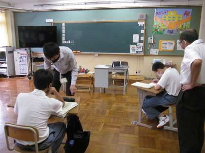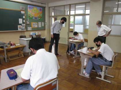 10月12日(火)6限,育成学級の「数学」の授業を,新林小学校の校長先生に参観していただきました。生徒たちは,百ます計算,計算しりとり,ピラミッド算に,とても集中して取り組んでいました。百ます計算は,とても速く仕上げることができていました。計算しりとりでは,途中の計算を確かめながら,ゴールにたどり着いていました。ピラミッド算では,法則を見つけることができていました。