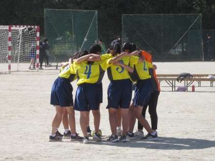 10月23日(土)午後12時30分から,松尾中学校において,「春の全国大会」京都市代表決定戦女子の部が行われました。対戦相手は深草中学校でした。男子と同じく円陣組んで,気合を入れて試合に臨みました。試合開始当初は,うまくパスが通って得点を挙げることができましたが,次第に相手の反撃に合いました。点差が少し開きましたが,くらいついて頑張っていました。ハーフタイムでは,前半の戦い方を振り返り,後半戦に臨みましたが,相手戦力が高く,残念ながら敗れました。