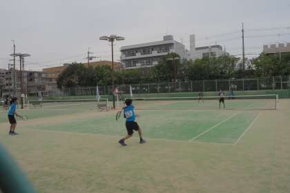 1ペアは,1試合目の対修学院中戦に勝ち,波に乗り,2試合目の対桃山中戦にも勝利し,準決勝進出とともに全市大会への出場を確定しました。3試合目の準決勝戦,対修学院中戦にも勝利し,4試合目の決勝戦に臨みました。対戦相手は強豪の桂中で,惜しくも敗れました。ブロックから上位4ペアが全市大会に出場しますが,予選ブロック2位通過となりましたので,全市トーナメントはシードの位置で戦うことになりました。