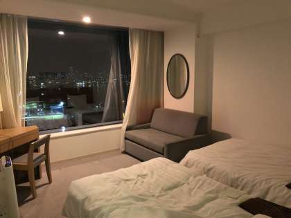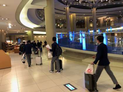 午後6時前に,グランドプリンスホテル広島に到着しました。とても素敵な建物・お部屋で、生徒たちのテンションは上がっています。予定より早く着いたので、15分早めて午後6時45分から夕食になります。